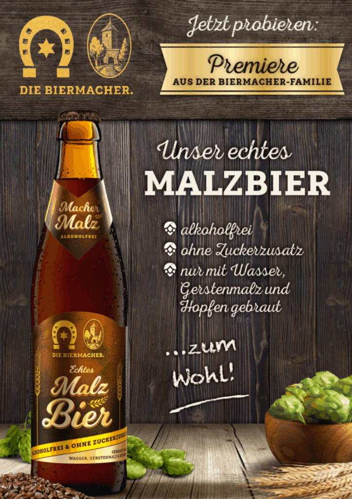 Kurz gesagt: DIE BIERMACHER. stehen für Leidenschaft und Brauhandwerk mit viel Liebe zum Detail. Unser Macher Malz wird nach ursprünglicher Rezeptur ohne Zusatz von Zucker gebraut – eben ein echtes Malzbier: selbstverständlich alkoholfrei, vollmundig und malzig.